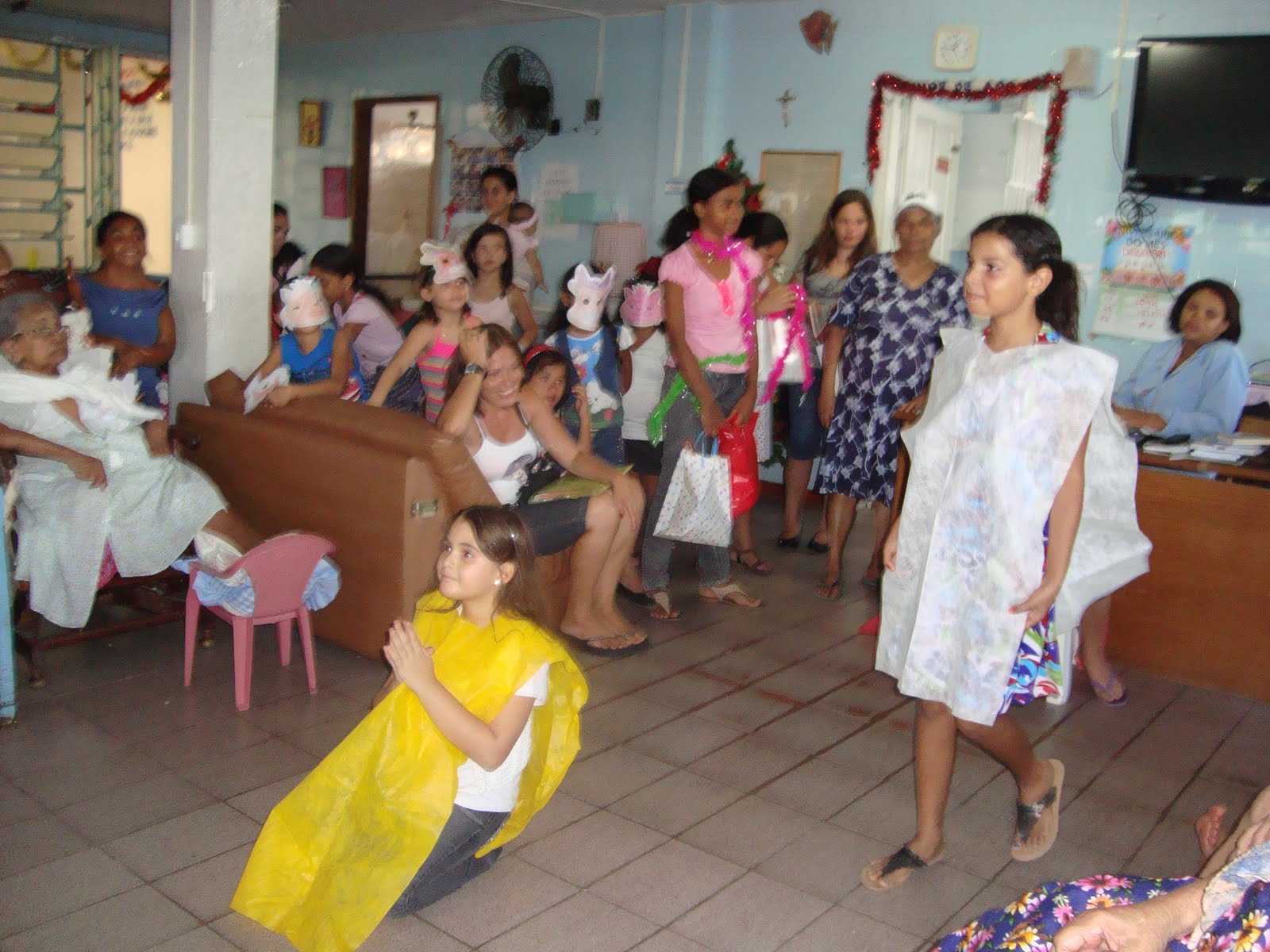 Fizemos uma encenação da peça "O aniversariante" falando do verdadeiro sentido do Natal, da comemoração do nascimento de Jesus. Apresentamos no lar geriátrico para as vovozinhas e elas gostaram muito!